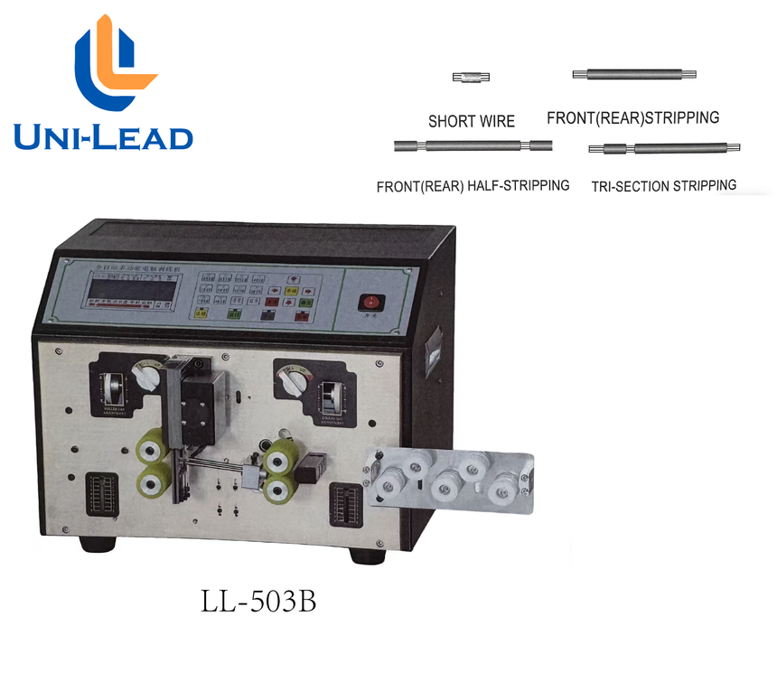 Feature Description: The most advanced electronic products increasingly demand lightweight, thin, short, and compact designs. Consequently, the required wires are trending towards finer gauges, shorter lengths, and higher precision. This unit excels in these areas, performing exceptionally even with minimal lengths. Wires as short as 50mm, previously considered very difficult to process, now pose no challenge. It can even process a total length of just 1mm, simultaneously stripping 0.3mm from each end. The machine features independent control for wire feeding, blade engagement, retraction, and stripping speed. For shielded wires, it can perform a forced stripping length of up to 99mm, eliminating the traditional problems of being unable to fully strip long sections and the risk of damaging the core wire. |